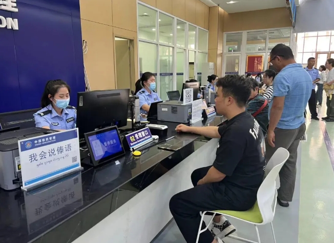 (二)队伍培养系统化。一是业务培训常态化。为进一步满足群众对公安机关服务的高质量要求,以“干什么练什么,缺什么补什么”为原则,积极组织民警辅警对国家移民局各项举措政策进行研究学习10余次,派送责任民警参与州、省级业务培训8人次,及时补齐业务短板,填补业务盲区,打造出入境管理精、专、优的高素质队伍;二是人才培养专业化。对大队中具有英语及非通用语言优势的民警进一步推荐使用,参与州级、市级各类专班运转,为开展国际警务合作、打击跨境违法犯罪贡献出入境力量;三是辅警队伍多面化。今年来,大队招录有傣语、哈尼语优势的辅警,针对其所学所长及自身语言优势,分别在窗口接待中承担引导、办理、咨询岗位,进一步增强窗口服务水平,方便少数民族申请人来询办事。四是整合警力多元化。将现有警力进行整合提升,根据出入境服务窗口群众需求来适时调整工作任务,责任分工不受岗位局限,以警力跟着任务走的形式调整,打造一支党建引领的“服务好、能办案、强查缉、善打击”的党员先锋队伍。