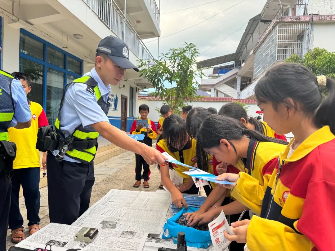 近日,勐腊县公安局瑶区派出所以“法治护航,平安‘童’行”为主题,在辖区学校开展法治副校长进校园宣讲活动,深入推进平安校园建设,筑牢青少年思想根基。宣传中,民警通过“模拟斑马线过马路”“识别交通信号灯”等互动游戏,帮助学生在实践中掌握“一停二看三通过”的交通安全准则;同时,设置普法宣传专区,民警围绕交通安全、防范校园欺凌、防诈骗、防溺水等热点问题,结合真实案例进行讲解,发放宣传资料,引导学生增强法律意识和自我保护能力。