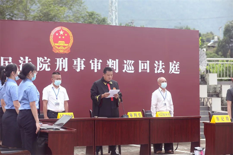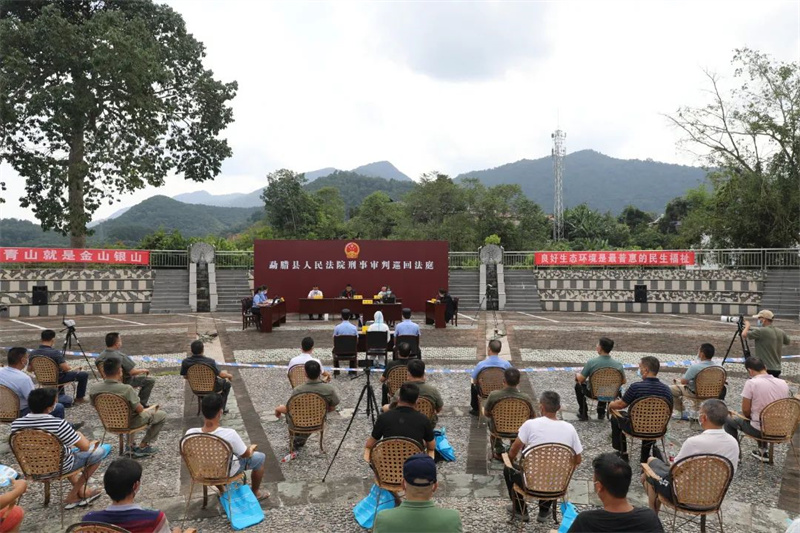 仪式后,勐腊县人民法院刑事审判庭敲响巡回审判点揭牌后的“第一槌”,公开开庭审理邓某危害国家重点保护野生植物一案,现场参与活动人员和附近村寨群众100余人旁听了案件庭审。法庭审理查明,被告人邓某在未取得采伐许可证的情况下,将一棵国家Ⅱ级保护野生植物红椿砍倒,犯危害国家重点保护野生植物罪,法庭依法判处其有期徒刑两年六个月,缓刑三年,并处罚金1万元。邓某当庭表示服判。