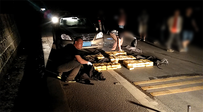 就在嫌疑人骑着摩托车,靠近潜伏位置的一刹那,潜伏车辆冲出逼停了摩托车,蔡晓东带着小左下车向嫌疑人冲去,由于经验不足,小左和战友,没能及时围住嫌疑人。嫌疑人从道路一侧跳下竹林陡坡逃窜,蔡晓东想也没想就跟着跳了下去,因陡坡太滑,他摔在尖尖的竹根上。“东哥,没事吧?”“没事,防弹衣护着啦。”随即起身继续追击,很快发现嫌疑人丢弃的背包。因天黑路滑,继续追击会有危险,蔡晓东便指挥队员警戒,教小左如何现场取证,封存扣押毒品。