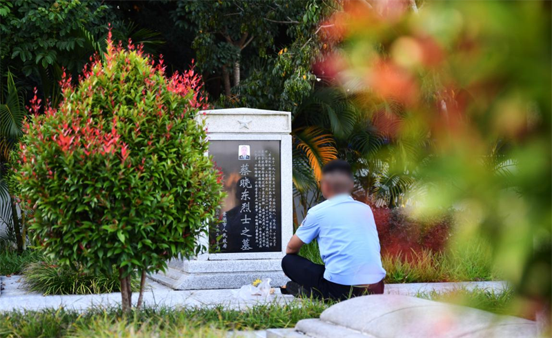9月底,一个清朗的秋天,小左又来到云南勐龙烈士陵园,他带着鲜花和师傅生前最爱吃的烧烤和炒米干,他把装着炒米干的盒子打开,摆上了一双筷子。“东哥,之前你不是一直说没见过我穿警服的样子吗,你看今天我穿来了,咋样?还是比较帅的吧?东哥,家里面挺好的,我们也挺好的,东哥,我们好想你,我也好想你……”