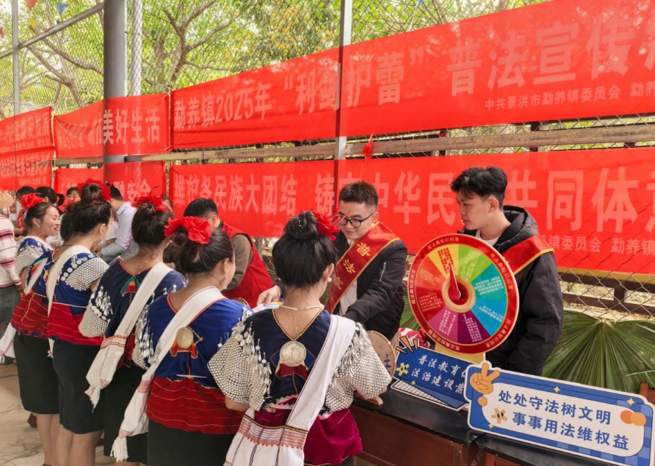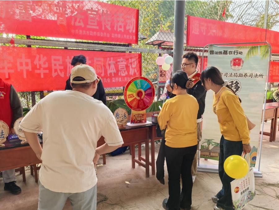 为进一步强化辖区少数民族法治宣传教育,近日,西双版纳州景洪市司法局勐养司法所联合镇平安法治办借助“龙嘎干”节契机,走进景洪市勐养镇昆格村委会纳板二组,利用人流量大、群众参与度高、普法效果好的特点,将民族活动与法治宣传巧妙融合,开展了一场有重点、有亮点、有看点的法治宣传活动。