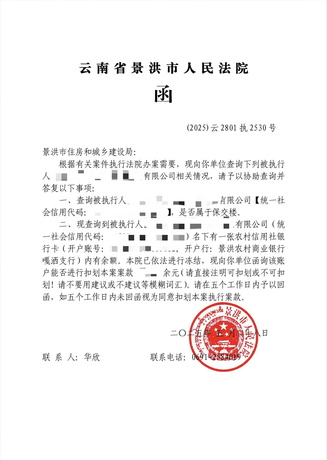 (景洪市人民法院向景洪市住房和城乡建设局发出《协助查询函》)