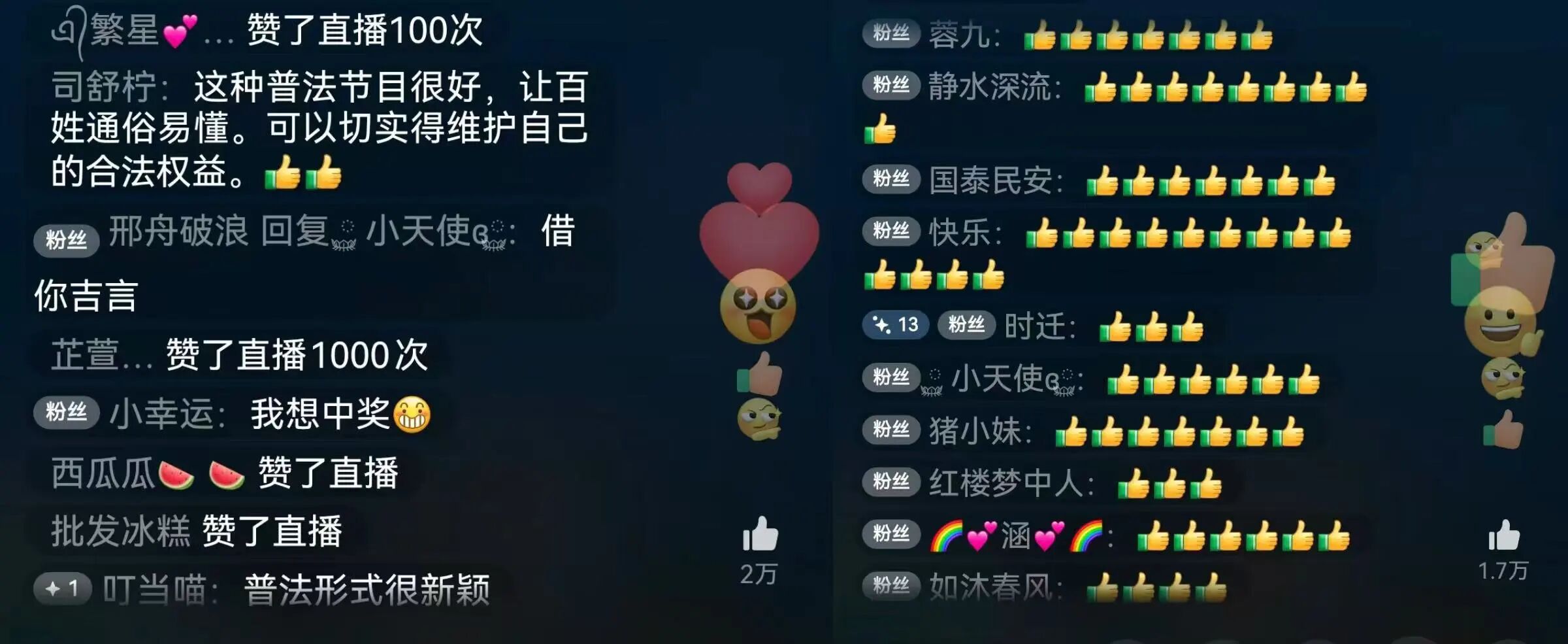 本次直播全平台总观看量91万人次,直播落幕热度依旧不减,粉丝辐射全国各地,网友们纷纷留言点赞,直播在悠扬动听的傣族章哈歌声与泼水祝福声中圆满落幕。法治的种子,乘着泼水节的吉祥水花,播撒在美丽的傣乡大地;民族团结的情谊,伴着政法干警的初心使命,在边疆各族群众心中深深扎根、枝繁叶茂。