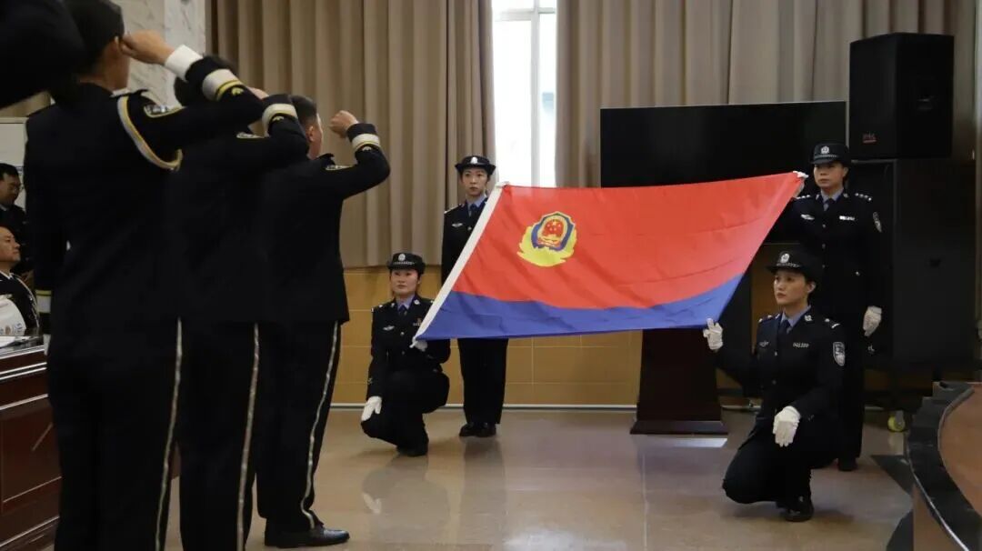 升旗仪式结束后,接续举行荣誉退休、警衔授予(晋升)及新警号颁发仪式。现场,退休民警代表接过荣退纪念品与鲜花,见证从警生涯的荣耀落幕;晋升警衔民警身着警服,在同事的祝福中迎接新的责任与使命;2025年新入警民警接过崭新警号,庄严宣誓“扣好从警第一粒纽扣”。