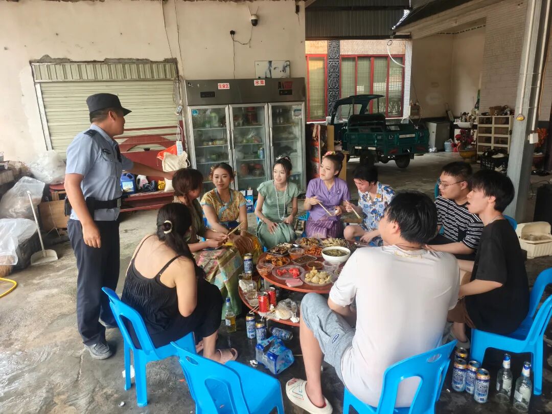 四月是傣族群众最热闹的月份,傣家村寨里总是亲朋相聚、欢歌笑语的热闹场景。这也是王勇一年中最忙的时间之一。他分管的曼康湾村委会是云南省省级美丽乡村建设示范村,下辖7个村民小组,居住着1240户5100余名村民,是辖区最大的傣族村委会。每年泼水节从赶摆布置到泼水庆祝,事事都离不开他操心。白天,他带队对活动场地开展安全隐患排查、对周围村民开展相关普法宣传。担心寨子里的老人听不懂汉语,他就制作双语的安全防范宣传录音发到各村微信群,再在村寨广播里循环播放,生怕漏掉一个村民。夜间,他又到辖区开展酒后不开车的劝导,为了加强劝导成效,他带着社区队在村头寨尾“蹲点”,看到村民们准备离开时就一个个的过去劝,有时候村民们看到他在村口,远远的就先冲他喊:“勇哥,喝酒不开车,开车不喝酒是吧,我们知道喽,你放心!”