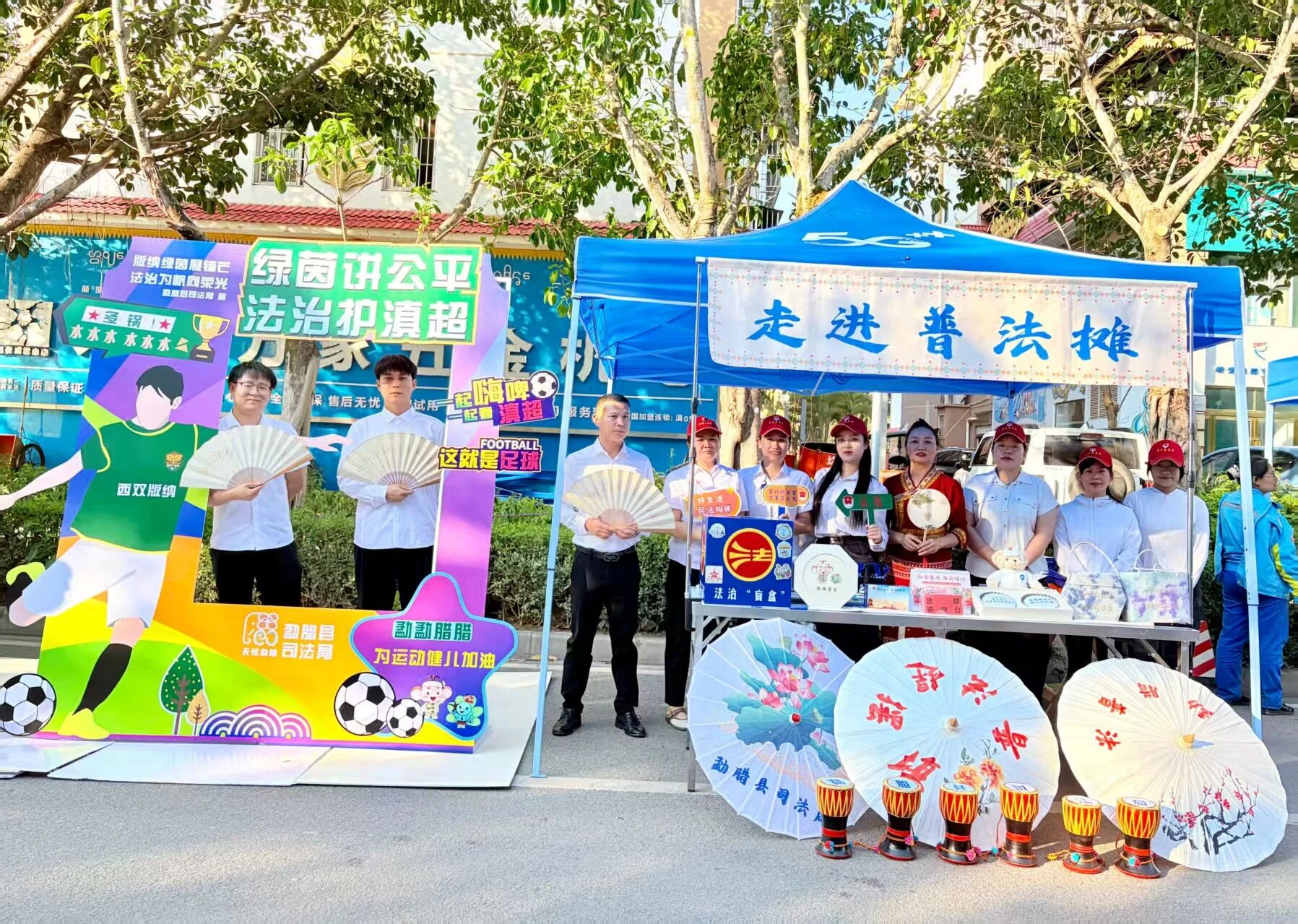 近日,西双版纳州勐腊县司法局依托“滇超”联赛的火热氛围,精心筹划了一期以“非遗普法遇上‘滇超’”为主题的普法宣传活动,将非遗文化、法治宣传、体育激情融合在一起,用群众喜闻乐见的形式,让法治宣传更鲜活、更接地气、更具感染力。