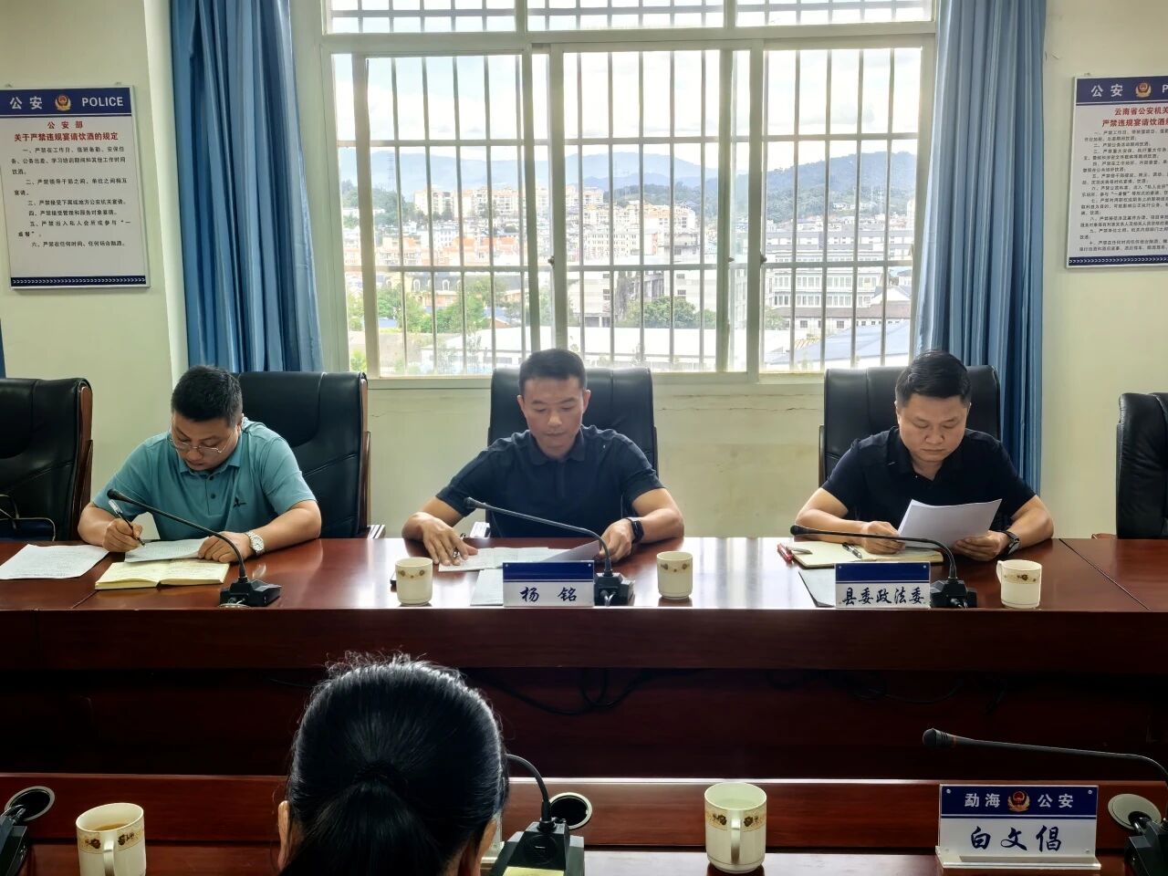 10月31日下午,勐海县委常委、县委政法委书记杨铭一行到勐海县公安局调研指导工作,县公安局在家局领导参加调研座谈。座谈会上,调研组听取了勐海县公安局关于命案防控、交通安全管理以及社会治安整治等专项工作汇报。