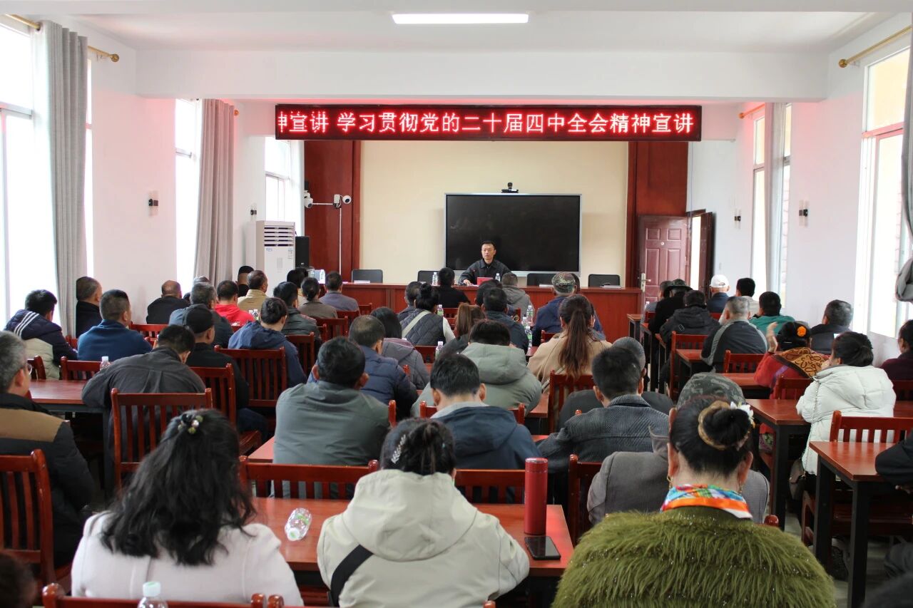12月4日,勐海县委常委、政法委书记、县法学会会长杨铭到打洛镇打洛村开展学习贯彻党的二十届四中全会精神宣讲,130余名村组干部聆听宣讲报告。