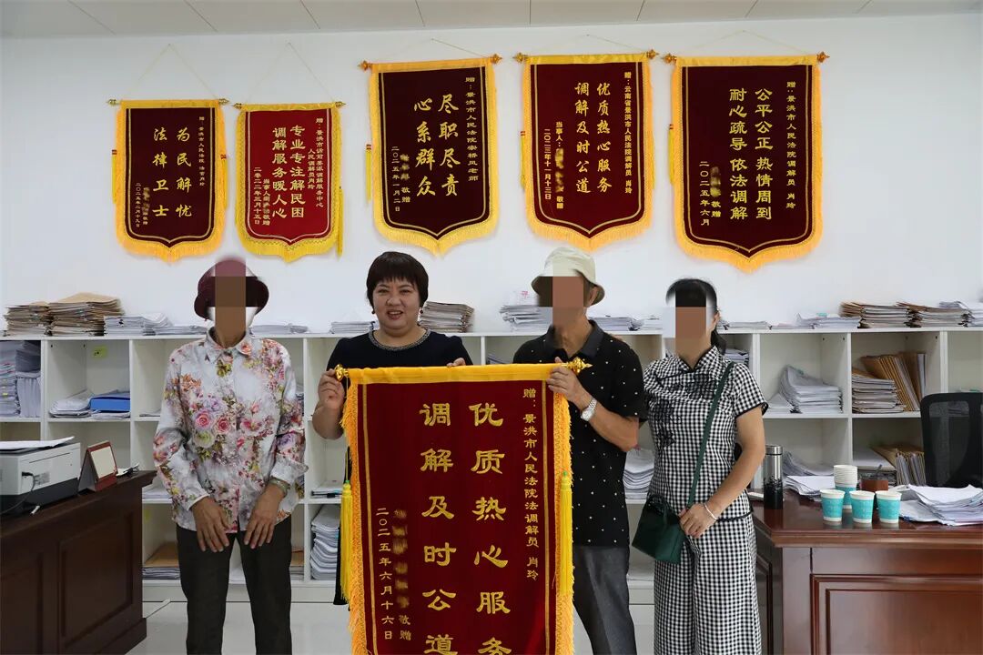 结案10天后,老两口及其子女特意送来锦旗。这面满载谢意的锦旗,与调解室里其他锦旗交相辉映,如同边疆法治晴空下又一颗温暖的星。当傍晚阳光透过窗户在锦旗上投下斑驳的光影,肖玲正望着锦旗出神——她或许在思考,下一个案件的“公平公式”该如何书写......