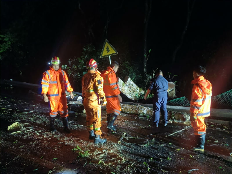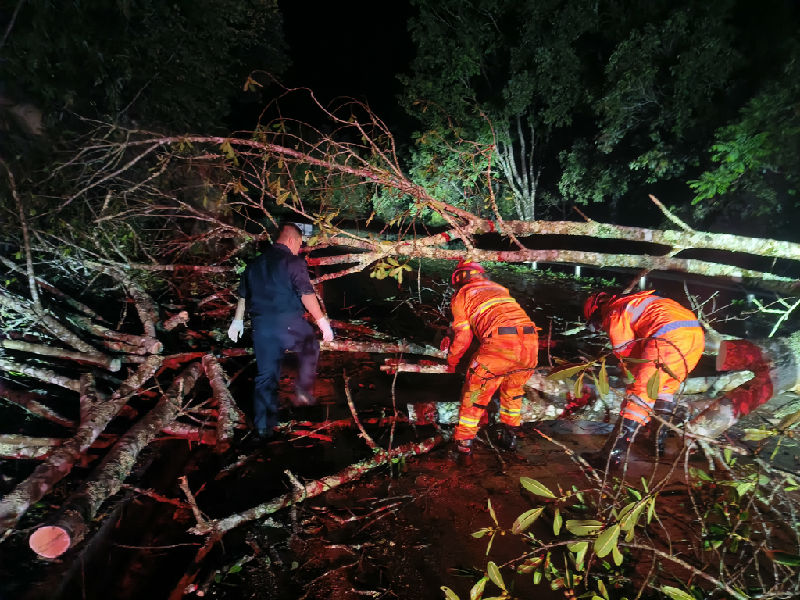 大渡岗乡辖区一道路旁树木倒伏阻断交通